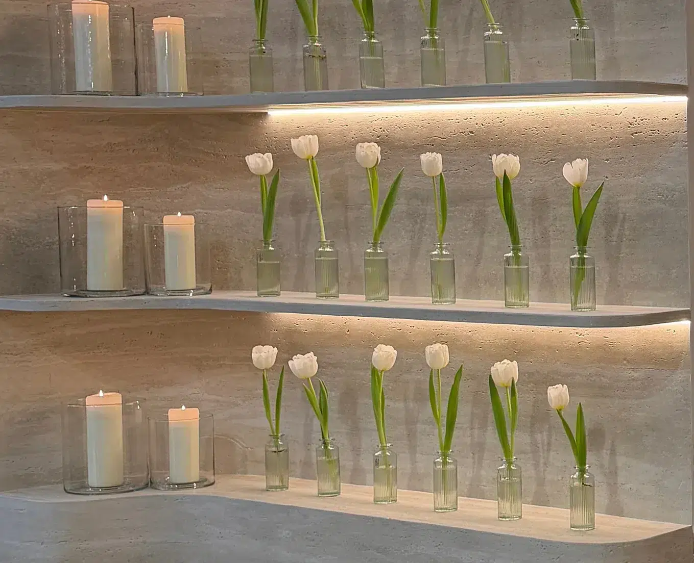 Notre gamme de feuille de pierre Translucide se pose sur un support en plexiglass pour obtenir une structure rigide, solide et transparente. Le bon positionnement des LED à l’arrière et nos conseils vous permettront d’obtenir un résultat parfait.