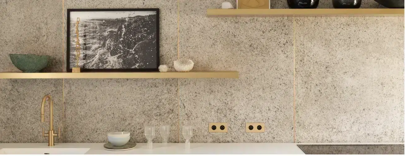 Une application des feuilles de pierre en cuisine et en crédence s’effectue à la perfection. Il convient de protéger la pierre avec l’hydrofuge de protection pour éviter les taches.