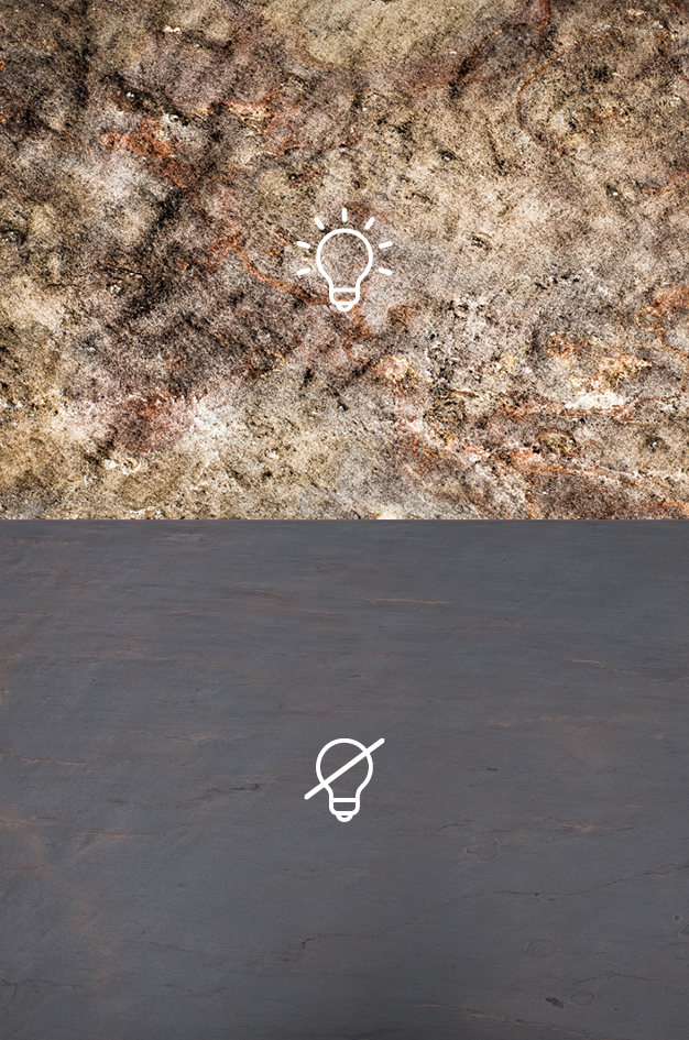- Effets lumineux spectaculaires : Grâce à son verso translucide, la lumière traverse l’ardoise pour créer des ambiances saisissantes.